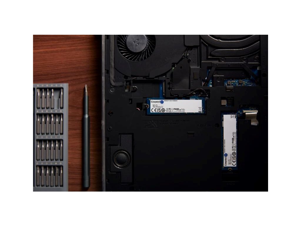 Kingston NV3 PCIe 4.0 NVMe SSD je úložné riešenie novej generácie poháňané riadičom NVMe Gen 4x4, ktoré poskytuje rýchlosť čítania/zápisu až 6 000/5 000 MB/s. Ponúka nižšiu spotrebu energie a nižšie teplo, čím optimalizuje výkon vášho systému bez kompromisov na hodnotu. Kompaktný, jednostranný dizajn M.2 2280 (22x80 mm) rozširuje úložisko až o 2 TB a šetrí miesto pre ďalšie komponenty. Zažite rýchlosti NVMe s NV3.
