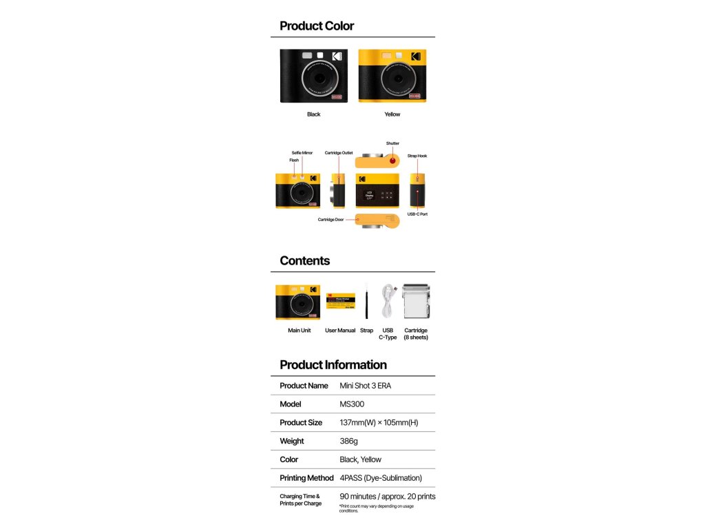 KODAK instantní fotoaparát Cam Mini Shot 3 Era KOCAMMS300B