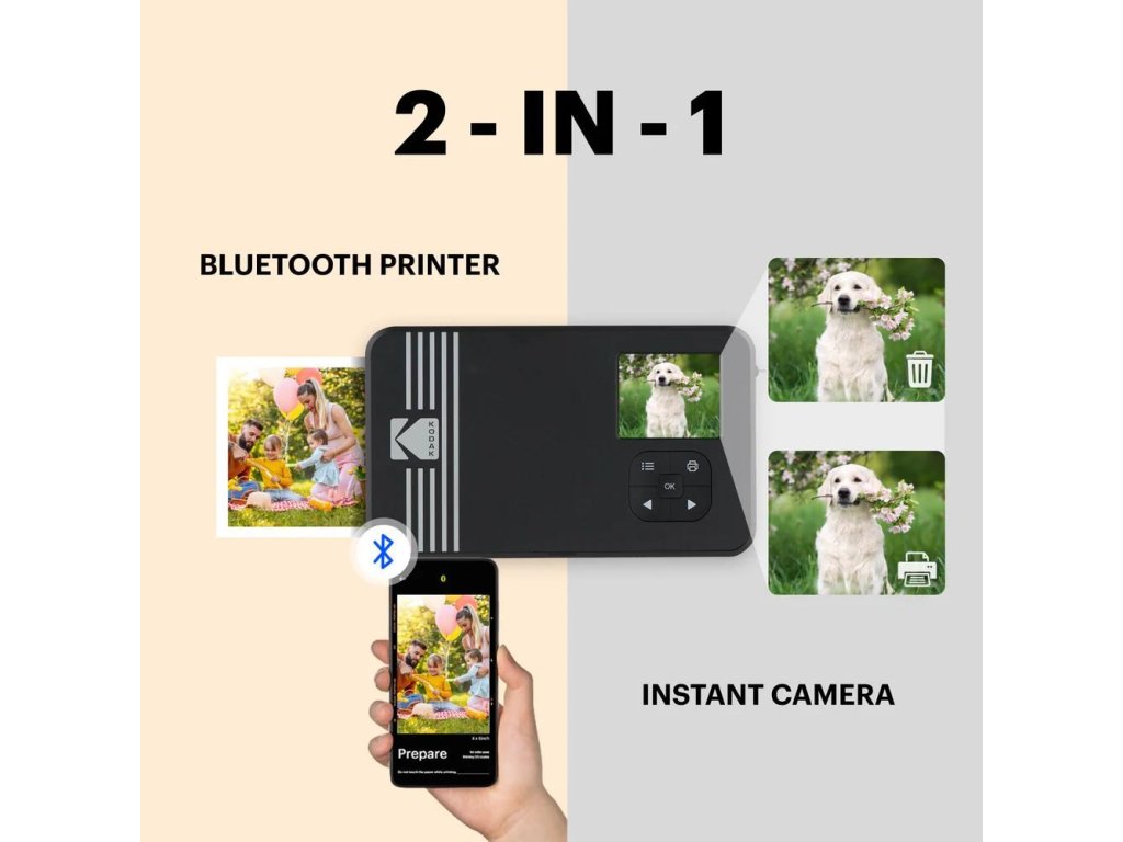Kompaktné zariadenie, ktoré spája funkciu instantného fotoaparátu a fototlačiarne pre fotografie o veľkosti kreditnej karty 2,1 × 3,4 palca. Fotografie môžete zachytiť a ihneď vytlačiť vstavaným fotoaparátom, alebo pripojiť telefón cez Bluetooth a tlačiť snímky z galérie – rovnako ako u radu kompaktných fototlačiarní KODAK.