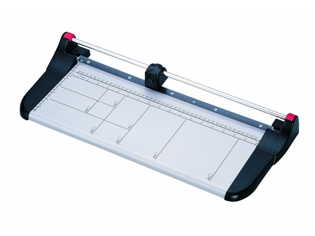 Kvalitní kolečková řezačka s pevnou kovovou základnou a řeznou hlavou umístěnou na kovové tyči, určena pro formát A3. Pracovní stůl je vybaven natištěnými měřítky a přítlačnou lištou z průhledného plastu. Řezačka umožňuje řezání max. 7 listů papíru najednou. Rotační nůž z nerezové tvrzené oceli. K dispozici náhradní řezná hlava. Maximální tloušťka řezu 0,7 mm. Vhodné pro použití v kanceláři a v domácnosti. PARAMETRY: • Typ řezačky: kolečkové • Maximální formát: A3 • Délka řezu: 460 mm • Maximální tloušťka řezu: 0,7 mm • Maximální kapacita řezu: 7 listů / 70g papíru • Přítlak stohu papíru: automaticky • Rozměry pracovní desky: 210x460 mm • Předkreslené formáty na pracovní desce: A6-A4 • Rozměry (Š x V x H): 570mm x 65mm x 245mm • Hmotnost: 1.8 kgDodatočné parametre