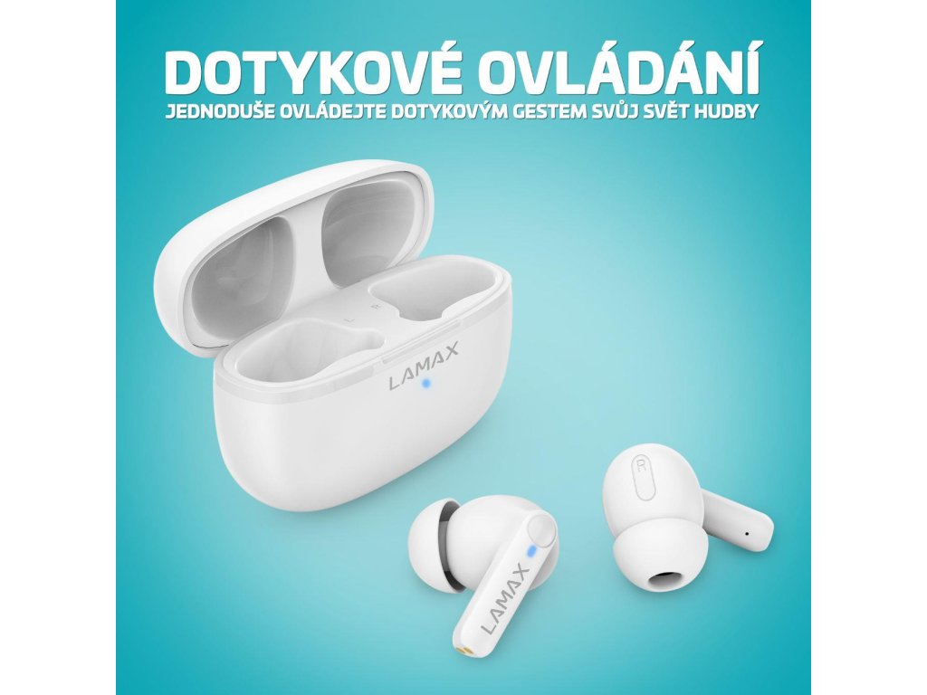 Kompaktné slúchadlá so štýlovým driekom vám presne padnú do ucha, zatiaľ čo elegantné nabíjacie puzdro bez námahy vkĺzne do každého vrecka.