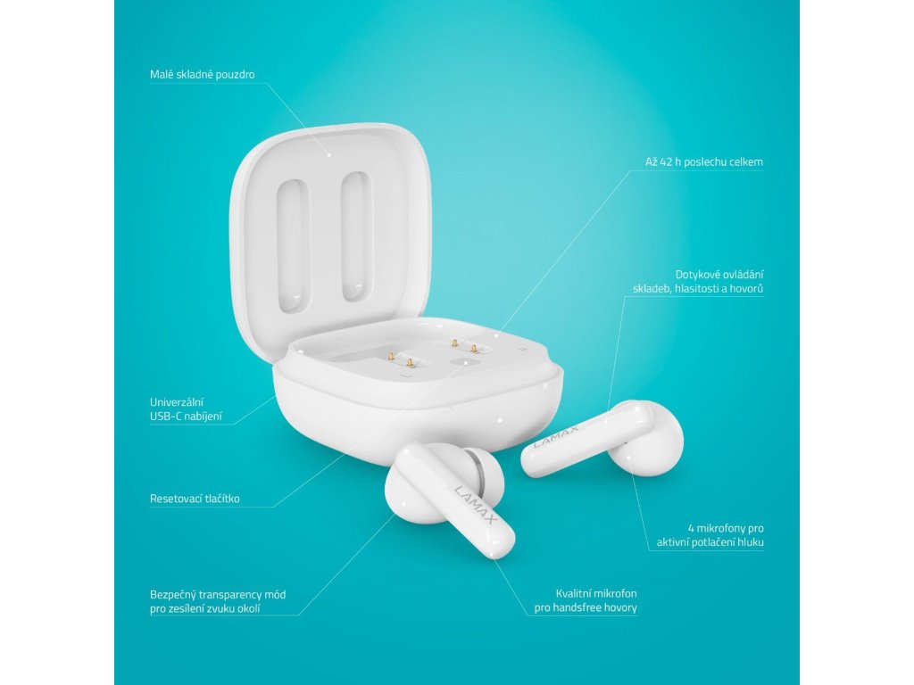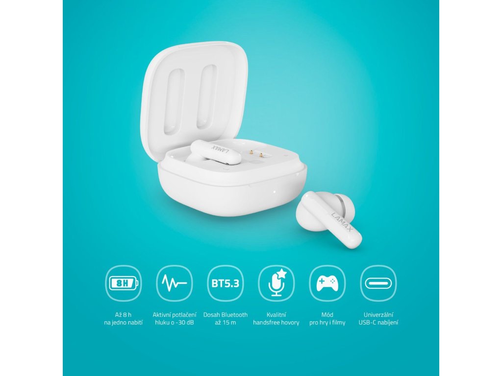 Perfektný zvuk v cool baleníNajlepší zvuk, aký si vieš predstaviť, v úplne top designe a s dlhou výdržou až 8 hodín, tak toto všetko môžeš mať s LAMAX Clips1 Plus. Bezdrôtové špuntové slúchadlá s nožičkou do uší sa automaticky bleskovo spoja cez Bluetooth 5.3 s tvojím telefónom a doprajú ti dokonalý pôžitok, nech už počúvaš čokoľvek. Gamerom určite neunikne Herný mód, ktorý zvýši pôžitok z hry. Dotykom si preskakuješ medzi tracky alebo prijímaš hovory, pri ktorých oceníš kvalitný mikrofón. To najlepšie je ale dokonale čistý a vyrovnaný zvuk, AAC, SBC kodeky, ANC pre potlačenie okolitého hluku a Transparency mode, aby bolo počúvanie perfektné aj bezpečné. Tak cestuj, pracuj alebo športuj štýlovo a v rytme.