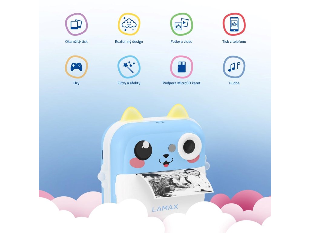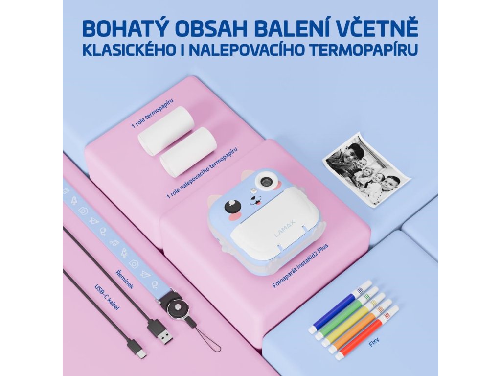 Objavte čaro zachytených okamihov, ktoré si vaše deti vytlačia počas pár sekúnd. Detský fotoaparát LAMAX InstaKid2 Plus s okamžitým tlačom nie je len roztomilý na pohľad. S českou aplikáciou, vysokým rozlíšením fotiek aj videa a sadou kreatívnych nástrojov sa stáva zábavným parťákom na výlety aj do izbičky. Deti si s ním nielen vyfotí svoje zážitky, ale ihneď si ich aj vytlačia, vyfarbia priloženými fixkami a lepia do denníka alebo kamkoľvek budú chcieť. Pomocou aplikácie zvládnu tlačiť fotky a poznámky z telefónu, skenovať texty zošitov, preklápovať snímky do animovaného štýlu alebo si s pomocou AI vyfarbiť čiernobiele obrázky. A keď si od fotenia chcú na chvíľu oddýchnuť? O zábavu sa postarajú aj vestavené hry.LAMAX InstaKid2 Plus fotoaparát podporuje kreativitu, samostatnosť aj hravé učenie a kto vie, možno práve tento foťák odštartuje kariéru vášho dieťaťa vo svete fotografie a filmu.
