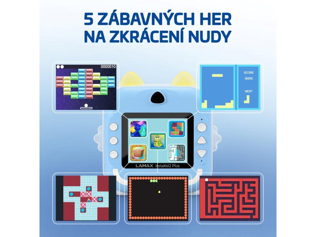 S LAMAX detským foťákom si deti vytvoria spomienku počas pár sekúnd – stačí stlačiť spúšť a čiernobiela fotka je na svete. V balení je aj samolepiaca rolka, takže si obrázok rovno nalepia do denníka, na stenu alebo napríklad babičke na chladničku. Vďaka priloženým fixkám si navyše každú fotku môžu vyfarbiť podľa seba. A keď sa práve nefotí? O zábavu sa postará päť vestavených hier, ideálnych napríklad na cesty.