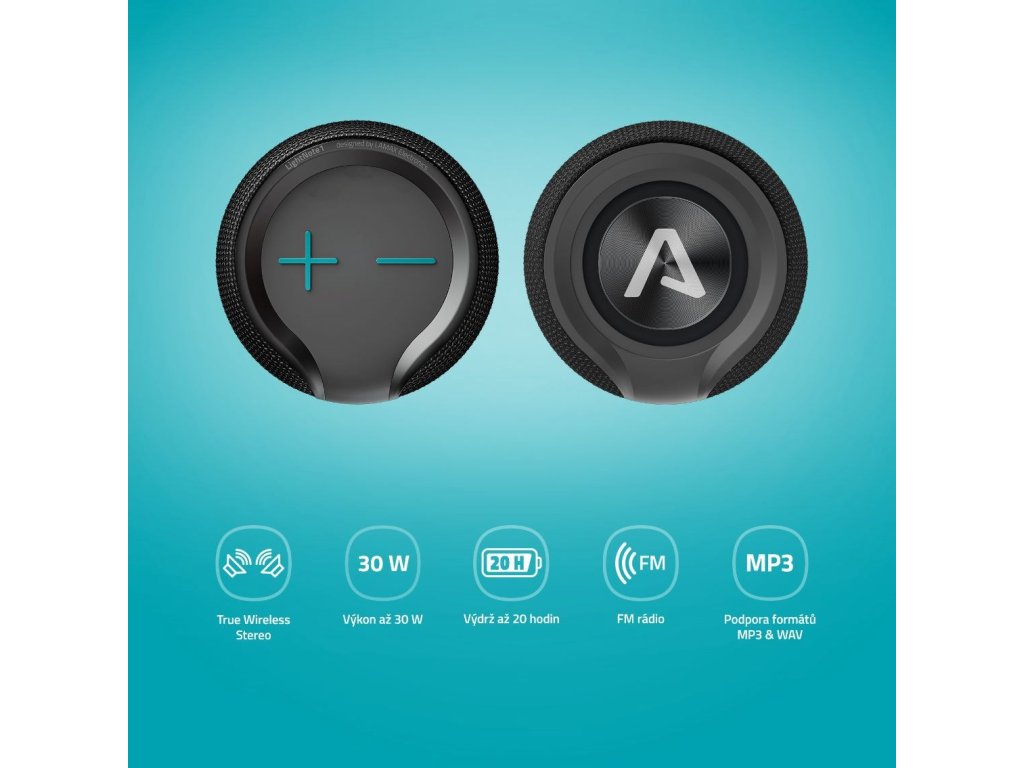 Reprak sa vie automaticky spárovať s tvojím zariadením až na 15 metrov cez najmodernejšie Bluetooth 5.3, ale nie je žiadny problém pokiaľ máš playlist v počítači, na micro SD alebo inde. Tých podporovaných typov pripojení sa ponúka množstvo (Micro SD, USB-A, AUX) rovnako ako formátov (MP3, WAV). Nevadí ani, keď nemáš po ruke vôbec nič, precvakni na FM rádio a potichu nezostaneš. Chceš to rozbehnúť viac? Využi funkciu True Wireless Stereo a pripoj si ďalší reprák, to bude ešte len hukot.