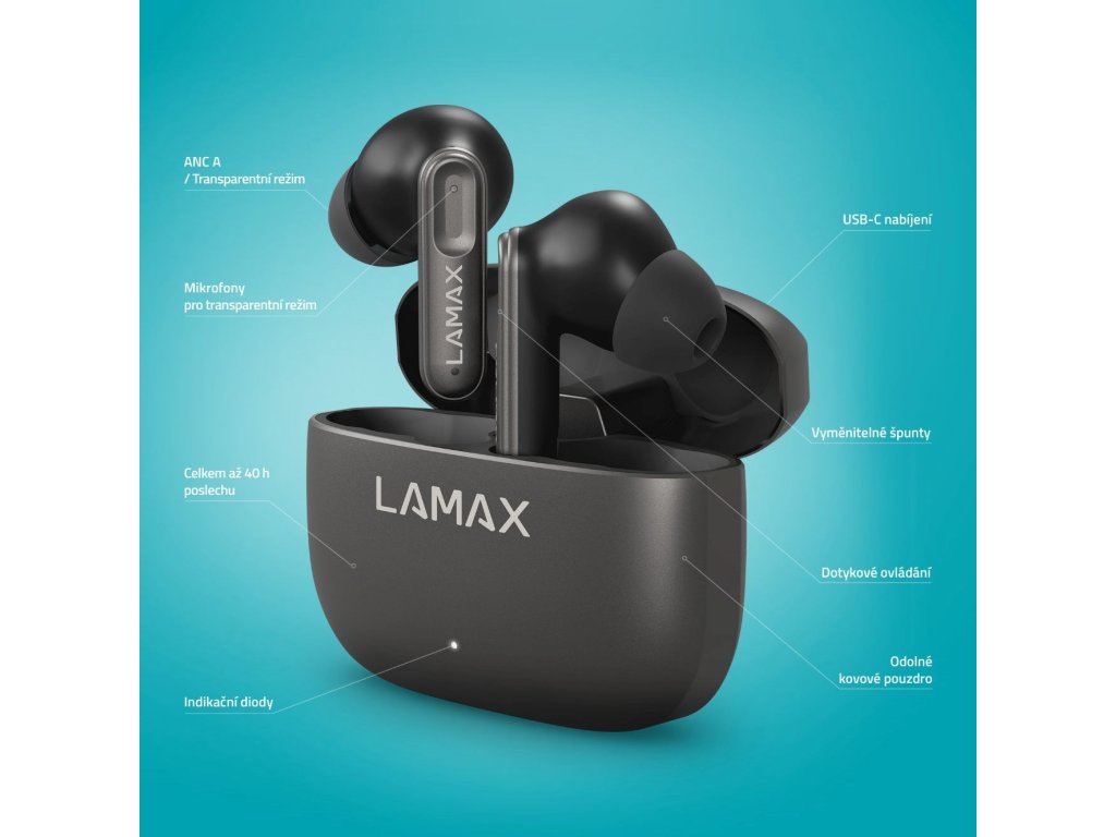 Vypnúť na chvíľu svet okolo, ale zároveň mať stále prehľad o dianí? Žiadny problém s bezdrôtovými TWS slúchadlami LAMAX SteelClips1 ANC. Je to fakt bomba, dokážu dokonale potlačiť okolitý hluk vďaka ANC režimu, takže si môžeš byť vo svojej ulite plnej muziky. Transparentný režim ti ale v správnej chvíli zaistí prehľad o okolí, napríklad keď na teba niekto hovorí. Čistý a vyrovnaný zvuk si užívaj pokojne až 8 hodín. Bez starostí ďalej aj volaj, streamuj alebo si strihni podcast, dobíjacie pevné a zároveň skladné kovové púzdro totiž ukrýva ďalšiu šťavu a získaš tak celkovo až 40 hodín. Potom stačí pripojiť cez USB-C konektor a za chvíľu frčíš ďalej. Bluetooth 5.3 slúchadlá bleskovo prepoja s tvojím zariadením a sú kompatibilné aj s kodekmi AAC a SBC pre ešte lepší zvuk. Krytie IPX5 zaručuje odolnosť voči potu a vlhkosti, čo spolu s dokonalým designom zaručuje, že si môžeš dať pri športe do tela a slúchadlá držia. Pri telefonovaní a videokonferenciách ťa zase podrží kvalitný mikrofón a dotykové ovládanie sa hodí v každej situácii. Túto parádu v oceľovom brnení jednoducho musíš mať.