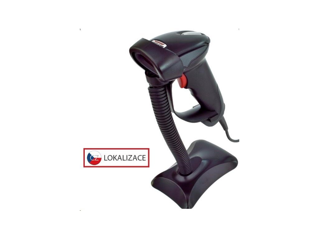 Čierny laserový ručný snímač čiarového kódu umožňujúci automatickú detekciu prítomnosti kódu a dodávaný so stojanom. Konštrukcia sa vyznačuje vysokou spoľahlivosťou a odolnosťou. Je vybavený rozhraním USB, ktoré umožňuje emulovať klávesnicu a sériový port.