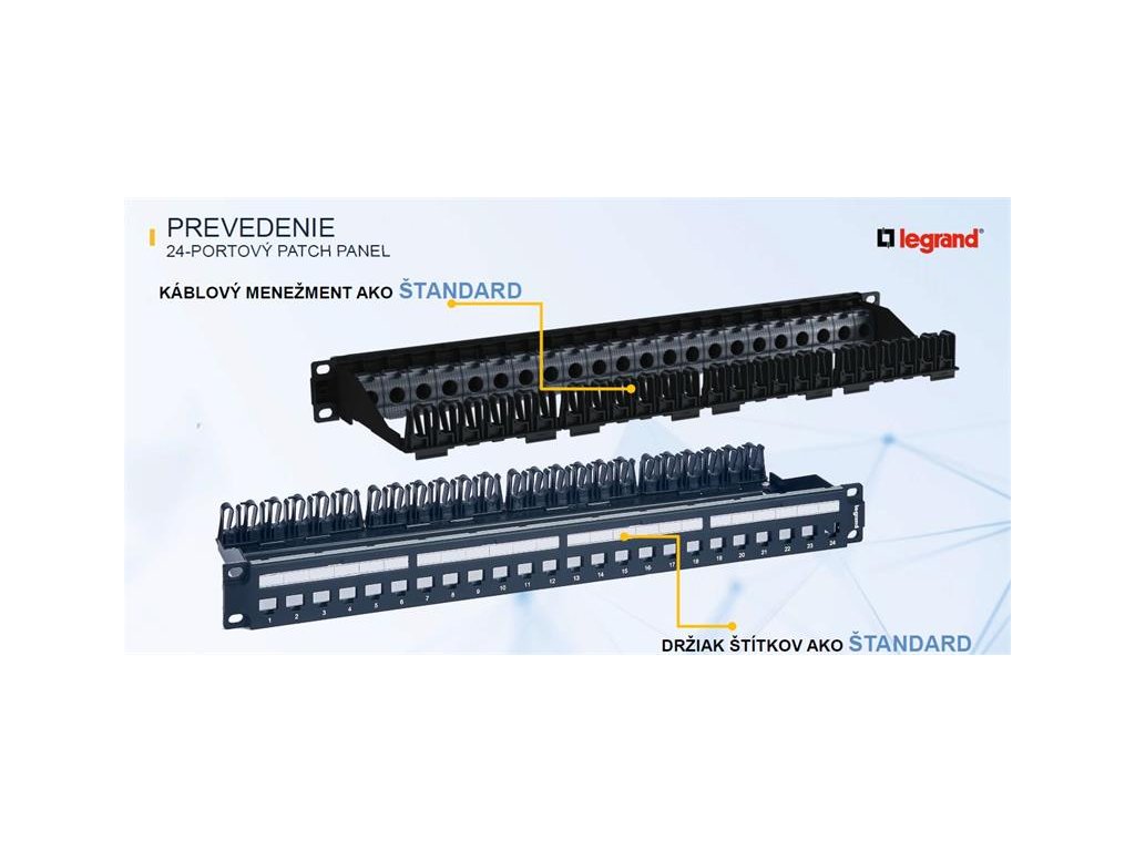 Modulární patchpanel z modelovej rady Legrand LINKEO - C Kompatibilný iba s keystone Legrand LINKEO - C viz súvisiace produktyDodatočné parametre