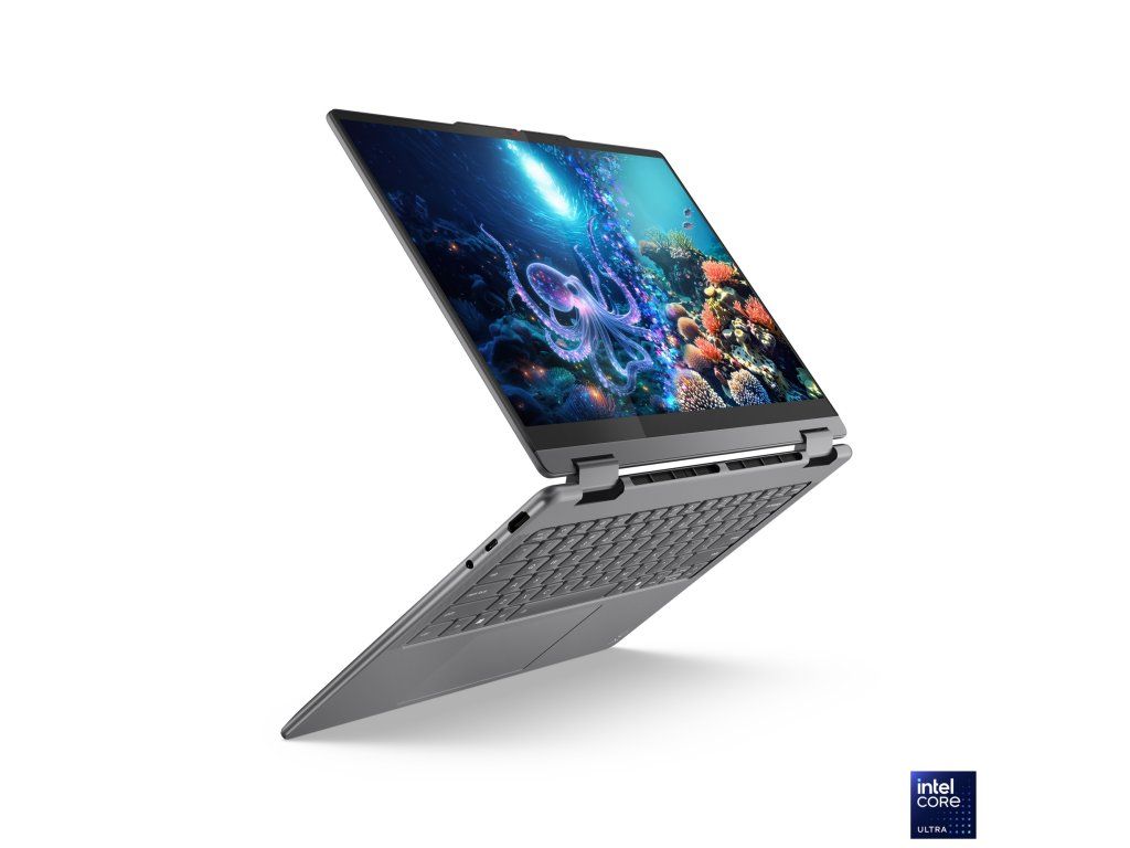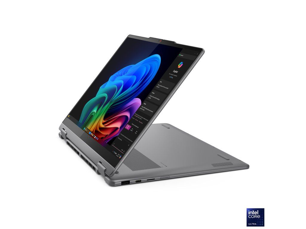 Lenovo Yoga 7 2v1 14ILL10 Copilot+ PC * armádní standard MIL-STD-810H * Intel® Evo™ Operační systém: Windows® 11 Home Procesor: Intel Core Ultra 7 256V (8 jader - 4P + 4LPE, 8 vláken, P-core 2,2/4,8 GHz, LPE-core 2,2/3,7 GHz, 12 MB cache) NPU: Integrovaný Intel® AI Boost, až 47 TOPS Paměť: 16GB integrovaná LPDDR5x-8533 Počet slotů (celkem/volných): bez slotů (0/0) Maximální velikost: 16GB, nelze navýšit Pevný disk: 1TB SSD M.2 2242 PCIe® 4.0x4 NVMe® Sloty pevného disku: 1x M.2 SSD Optická mechanika: ne Čtečka paměťových karet: microSD Displej: dotykový 14'' 2,8K WQXGA+ (2880x1800) OLED, 500 nitů, lesklý/ochrana proti otiskům prstů, 100% DCI-P3, 120 Hz, Dolby Vision®, TÜV Low Blue Light, sklo Grafická karta: Intel Arc 140V Audio: 4 stereo reproduktory, 2x 2W (woofery), 2x 2W (výškové reproduktory), optimalizované s Dolby Atmos®, Smart Amplifier (AMP), kodek Realtek® ALC3306, HD, 4x mikrofon Webkamera: 5MP + IR se závěrkou Polohovací zařízení: beztlačítkový vícedotykový touchpad s povrchem Mylar®, podpora Precision TouchPad (PTP), 75x120mm Podsvícená klávesnice: ano Numerická klávesnice: ne Čtečka otisků prstu: ne Pero: Lenovo® Yoga® Síť: ne Bezdrátová komunikace: WLAN + Bluetooth (Wi-Fi® 7, 802.11be 2x2 + BT5.4) Porty USB: * 1x USB-A (USB 5Gb/s/USB 3.2 Gen 1), Always On * 2x USB-C® (Thunderbolt™ 4/USB4® 40Gb/s), s USB PD 3.0 a DisplayPort™ 2.1 Další porty: * 1x kombinovaný konektor pro sluchátka/mikrofon (3,5mm) * 1x HDMI® 1.4b * 1x čtečka microSD karet TPM 2.0: ano Baterie: integrovaná 70Wh Li-Pol Výdrž baterie: 13,5h (MobileMark® 30@250 nitů) Napájení: 65W, USB-C® (3pin) Barva: Luna Grey Materiál: hliník Rozměry: 317x228x15,45mm Hmotnost: cca 1,38kg Záruka: 3 roky Odkaz na stránku výrobce: https://psref.lenovo.com/Detail/Yoga_7_2_in_1_14ILL10?M=83JQ0043CKDodatočné parametre