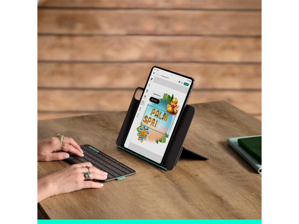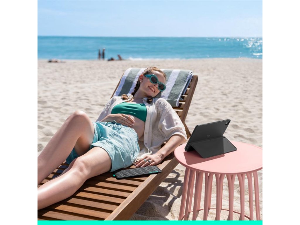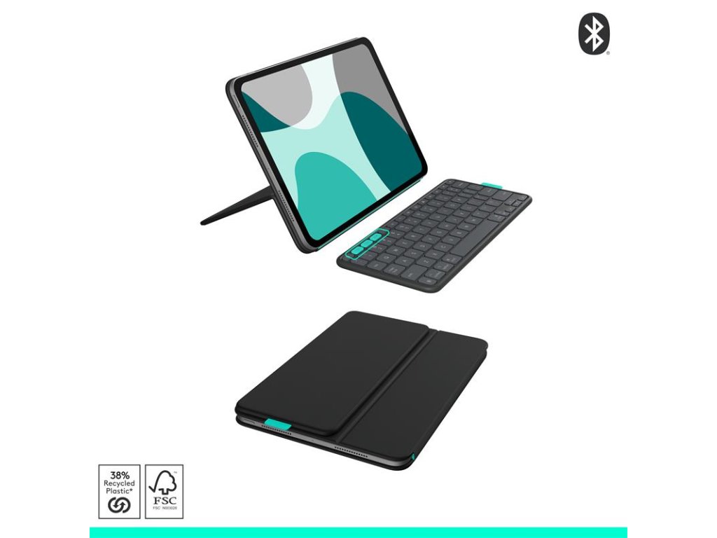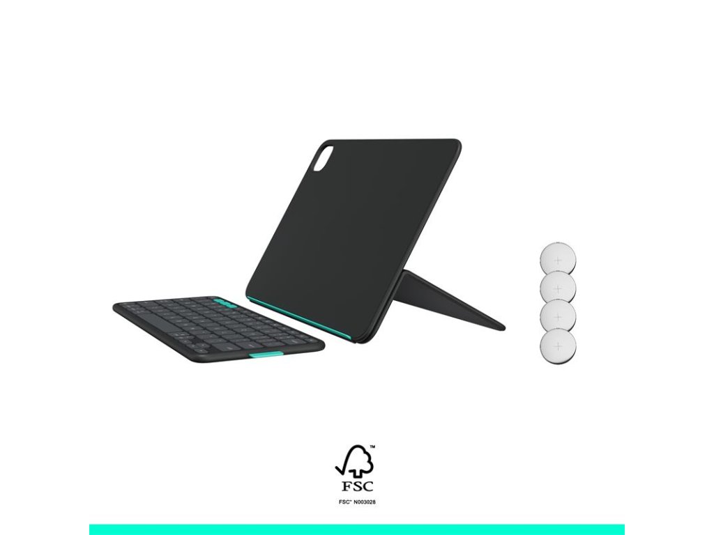 Užite si zábavu alebo sa sústreďte. Odpojte klávesnicu Bluetooth a umiestnite ju kamkoľvek. Potom ju pomocou magnetov zacvaknite späť do puzdra, aby ste ju mohli uložiť. Nastavte stojan do správneho uhla a nastavte iPad do režimu na šírku alebo na výšku. Užite si pohodu Výzva pre všetkých tulákov – čas na radosť nastal. Vďaka puzdru Flip Folio bude váš iPad zábavný aj funkčný, takže sa budete môcť sústrediť na to, čo je dôležité, nech ste kdekoľvek. Píšte alebo klávesnicu zložte Môžete ju používať, prenášať alebo zložiť. Klávesnica Bluetooth vám umožní umiestniť zostavu presne podľa vašich predstáv a zároveň si vychutnať písanie na klávesnici úplnej veľkosti v kompaktnom prevedení. Pre ľahké uloženie ju môžete magneticky pripevniť na puzdro iPadu. Chráňte iPad Flip Folio umožňuje brať si iPad prakticky kamkoľvek, pričom ponúka ochranu spredu aj zozadu, ktorá chráni iPad pred nárazmi a poškriabaním. Spárujte svoje obľúbené zariadenia Spárujte až tri svoje obľúbené zariadenia s Bluetooth® a prepínajte medzi nimi jedným pohybom. Klávesy Easy-Switch vám umožnia medzi nimi plynule prepínať. Otáčajte z režimu na šírku do režimu na výšku Sledujte obraz na šírku alebo otočte kameru do polohy na výšku. Či už si prezeráte, čítate, čmáráte alebo chatujete s priateľmi, Flip Folio vám umožní umiestniť iPad presne podľa vašich predstáv. Upravte si uhol podľa potreby Flexibilný stojan vám umožní nájsť ten správny uhol na sledovanie alebo písanie, to všetko pri zachovaní kompaktných rozmerov. Obľúbené skratky Vďaka celému radu klávesových skratiek systému iOS získate rýchly a jednoduchý prístup k preferovaným funkciám, ako je snímka obrazovky a ovládanie médií. Energia na cesty Flip Folio je napájaný štyrmi vymeniteľnými mincovými batériami, ktoré vydržia až 2 roky*, takže sa môžete voľne pohybovať bez starostí. Po nasadení klávesnice do puzdra sa klávesnica automaticky vypne za účelom úspory energie. (*Životnosť batérie vychádza z používania 2 hodiny denne, avšak môže sa líšiť v závislosti od užívateľa a podmienok používania.)Dodatočné parametre