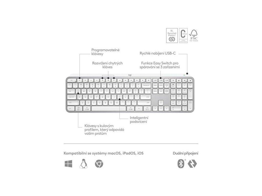 Klávesnice pro notebooky kompatibilní s operačními systémy Windows, macOS, Linux, Chrome OS, iOS, iPadOS, Android.