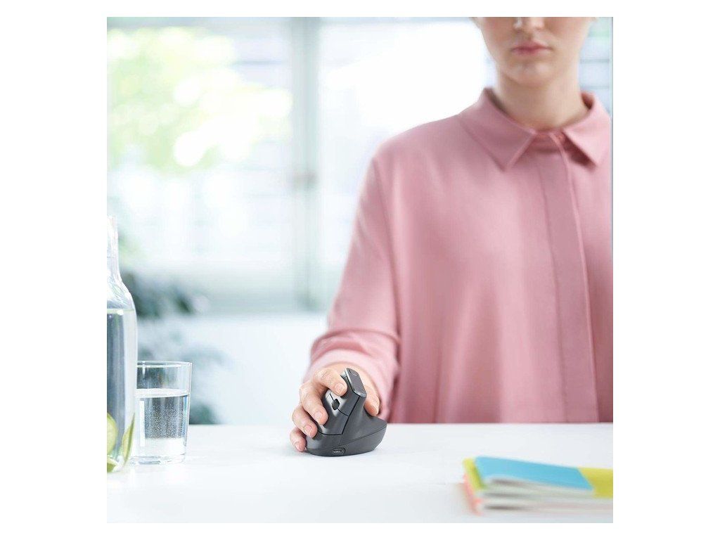 Prirodzená poloha podania ruky myši MX Vertical znižuje svalové napätie o 10 percent a umožňuje usadenie do ergonomickejšia polohy.