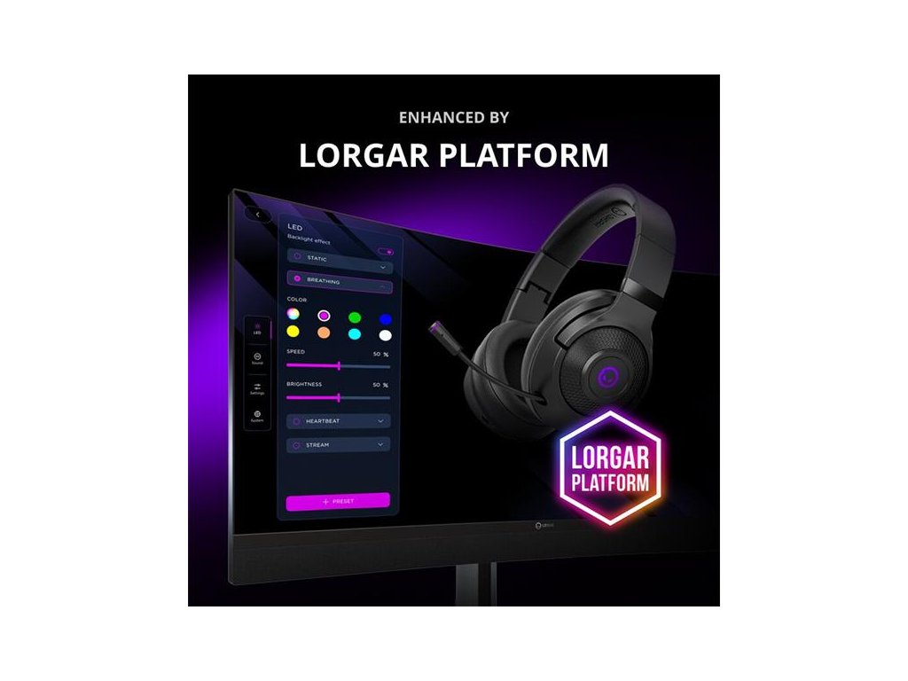 Náhlavná súprava Noah 702 sa bezproblémovo integruje bsps platformu LORGAR PLATFORM, ktorá umožňuje spravovať a synchronizovať podsvietenie,monitorovať využívanie dát a vytvárať vlastné herné profily.