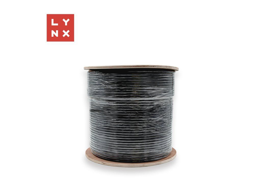 LYNX FTP kabel Cat6, PE (Fca), celoměděný, venkovní, černý, cívka 305m LX-SLD-FTP6-PE-BK