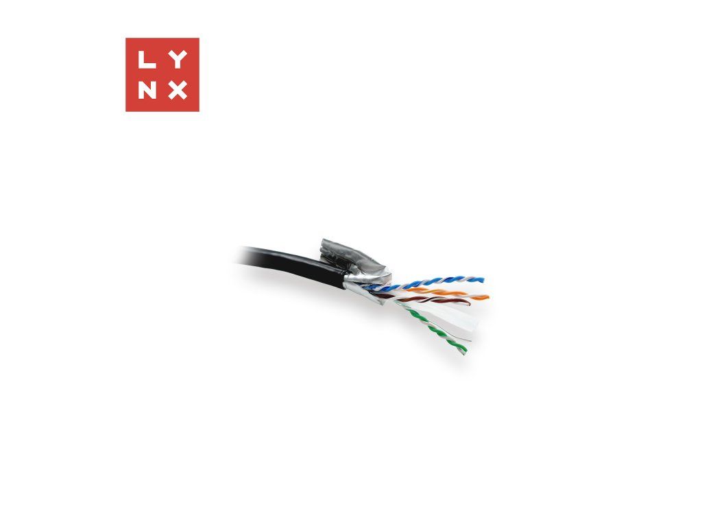 LYNX FTP kábel Cat6, PE (Fca), celoměděný, venkovní, černý, box 305m