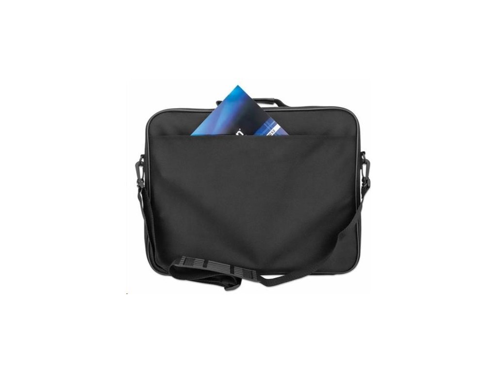 Plné otváranie, vhodné pre väčšinu notebookov do 15 rokov.6", dostatočne polstrovaná priehradka na notebook, predné, zadné a vnútorné vrecká, ramenný popruh, rukoväť, čierna farba