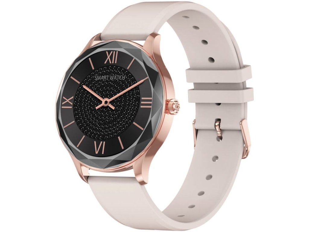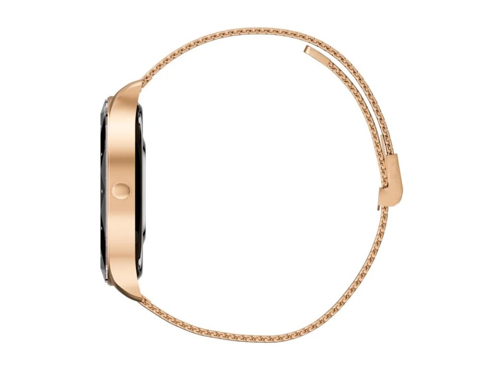 Inteligentné hodinky sú dodávané s dvoma remienkami: zlatým kovovým náramkom a práškovým ružovým silikónovým remienkom. Ciferník hodiniek môžete prispôsobiť remienku a svojmu štýlu pomocou viac ako 100 pripravených vzorov. Vyberte si elegantný alebo športový variant, monochromatickú alebo farebnú verziu a vyjadrite svoj štýl v každej situácii.