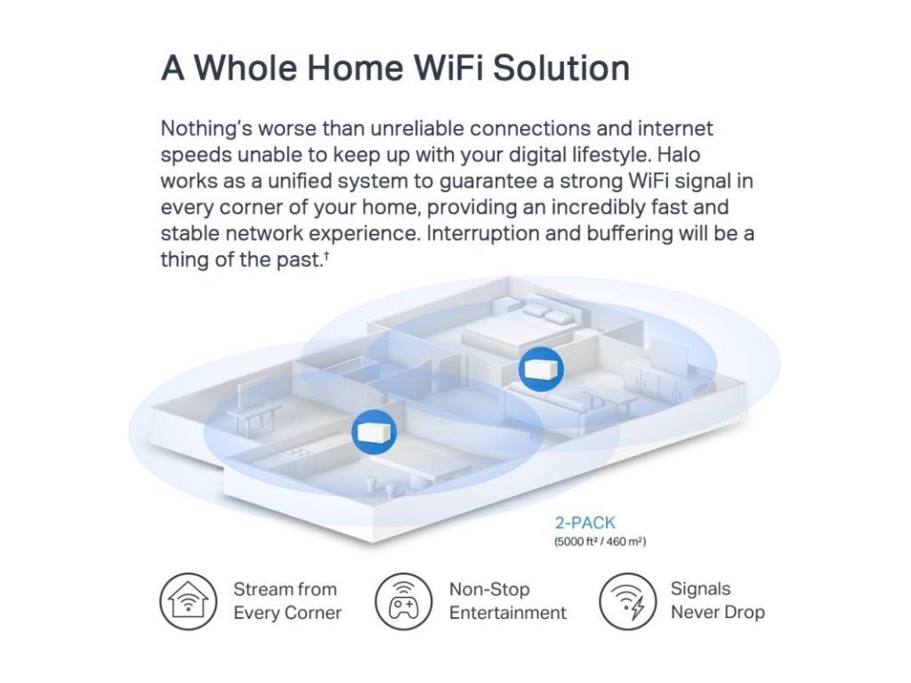 Bezproblémové prepínanie s jednou zjednotenou sieťou - Halo jednotky spolupracujú a automaticky prepínajú medzi Halo zariadeniami pri pohybe po domácnosti s jedným zjednoteným WiFi názvom a heslom.