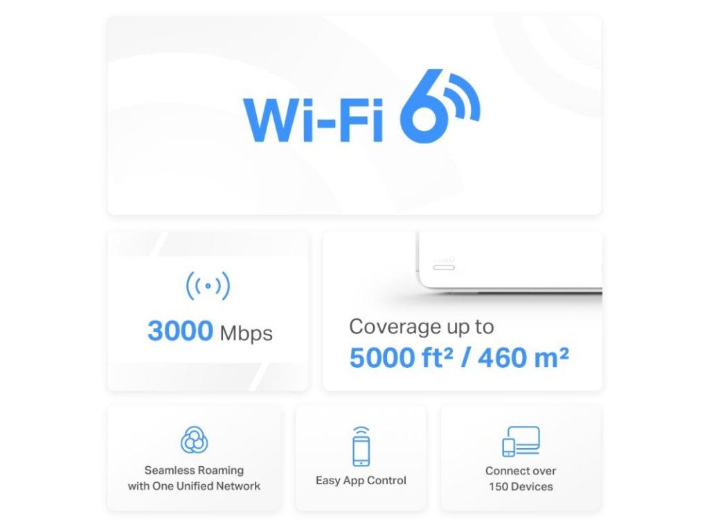 Pokrytie celej domácnosti - Pokrýva až 7 000 ft2 (650 m2) vysokorýchlostným WiFi, čím eliminuje mŕtve WiFi zóny vo vašom domove.