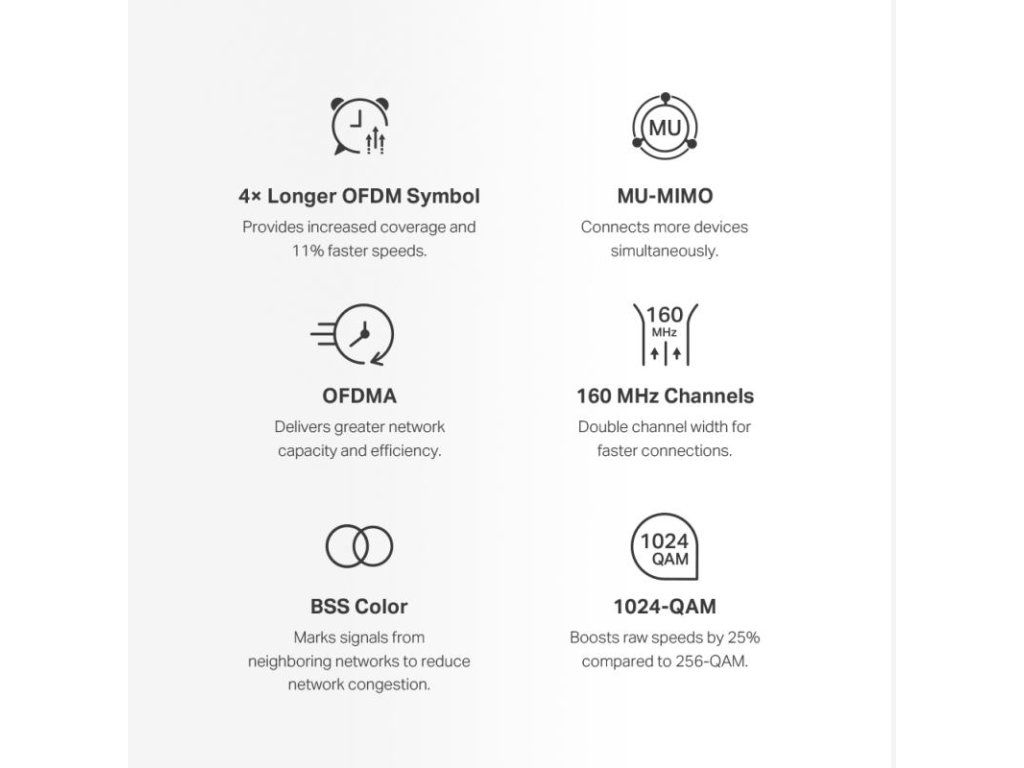 Dual Band WiFi 6 rýchlosť až 3000 Mbps - 2402 Mbps na 5 GHz a 574 Mbps na 2,4 GHz.