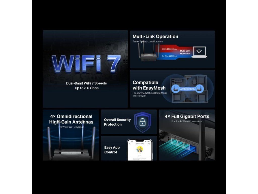 MERCUSYS MR25BE EasyMesh WiFi7 router (BE3600, 2,4GHz/5GHz,1xGbEWAN,3xGbELAN) MR25BE