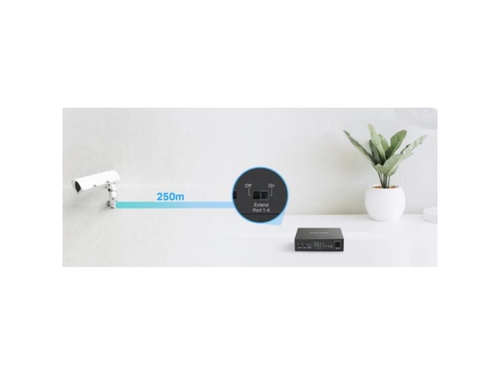 Switch, jednoduchá inštalácia, veľmi kompaktný tvar, moderný vzhľad. Podporuje Auto-Negotiation, Auto-MDI/MDIX. Rozhranie: 6 x 10/100/1000 Mbps RJ45, PoE na portoch 1 - 4, celkový PoE rozpočet 40 W
