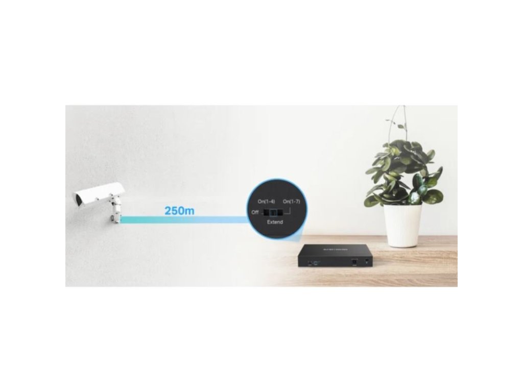 Switch, jednoduchá inštalácia, veľmi kompaktný tvar, moderný vzhľad. Rozhranie: 8x 10/100/1000 Mbps RJ45, PoE na portoch 1 - 7, celkový PoE rozpočet 65 W.