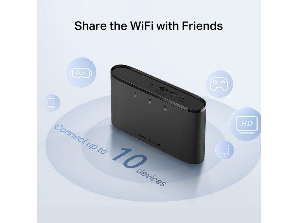 Veľké množstvo bezdrôtových zariadení je kompatibilných s týmto malým mobilným hotspotom. MT110 podporuje až 10 súčasných pripojení pre tablety, laptopy, mobilné telefóny a ďalšie zariadenia.