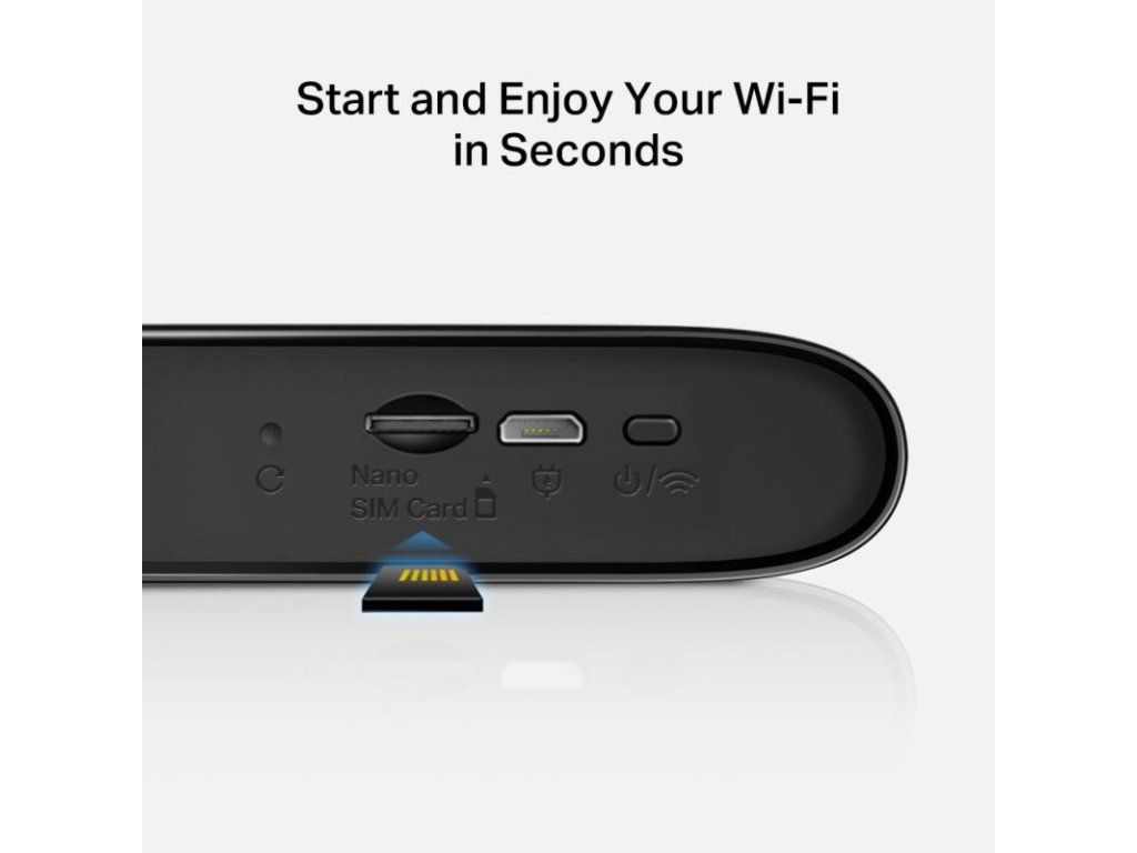 Pre zapnutie MT110 stačí vložiť SIM kartu a stlačiť tlačidlo napájania. Vďaka malému a užívateľsky prívetivému dizajnu bude váš 4G hotspot plne funkčný behom pol minúty.