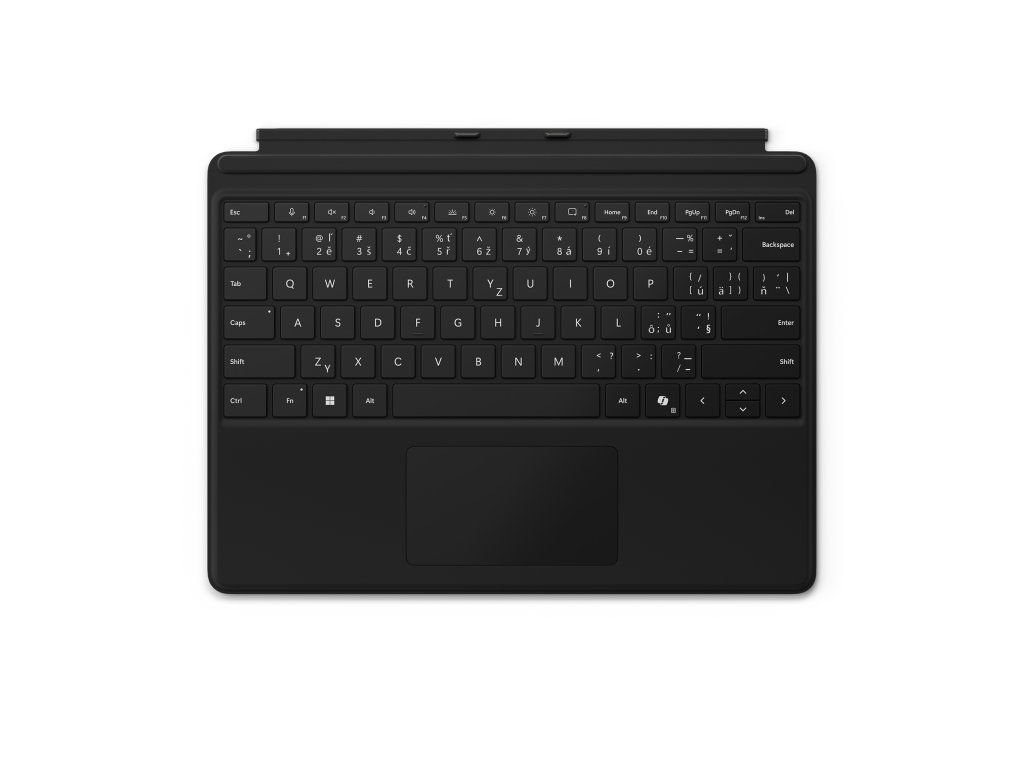 klávesnice Surface Pro Užijte si pohodlné psaní, ať jste kdekoli. Přenosná klávesnice poskytuje plně mechanické klávesy, podsvícení, ideální vzdálenost kláves mezi sebou a má také velký skleněný touchpad pro přesnou navigaci a novou klávesu Copilot, se kterou budete mít AI na dosah ruky. Rozměry: 289 × 221 × 5,35 mm Hmotnost: 335 g Rozhraní: magnetické Senzory: akcelerometr Materiál: polyuretan Barva: černá Klávesy: * aktivace pohybem (mechanických) kláves * CZ&SK layout, QWERTZ, celý řádek funkčních kláves (F1–F12) * vyhrazené klávesy pro Copilot, ztišení mikrofonu, vystřihování, zkratky Windows, ovládání médií a jasu obrazovky * pravé tlačítko myši Kompatibilita: * Surface Pro (11. edice) * Surface Pro 10 pro firmy * Surface Pro 9 * Surface Pro 8 Obsah balení: * Surface Pro * spouštěcí karta/průvodce zárukouDodatočné parametre