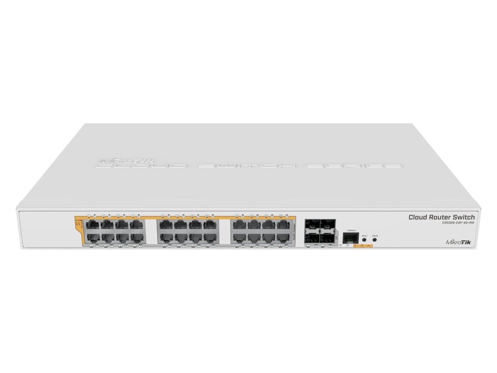 MikroTik Cloud Router Switch CRS328-24P-4S+RM, 24x GbE PoE/PoE+, 4x SFP+, RouterOS/SwOS, L5, PSU, 1U (PoE budget 450W) CRS328-24P-4S+RM