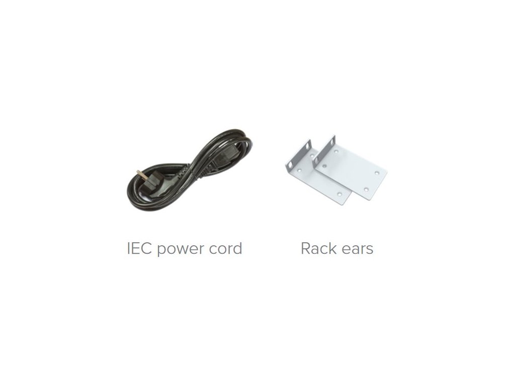 Součástí balení jsou 2 držáky pro montáž do racku a napájecí kabel.
