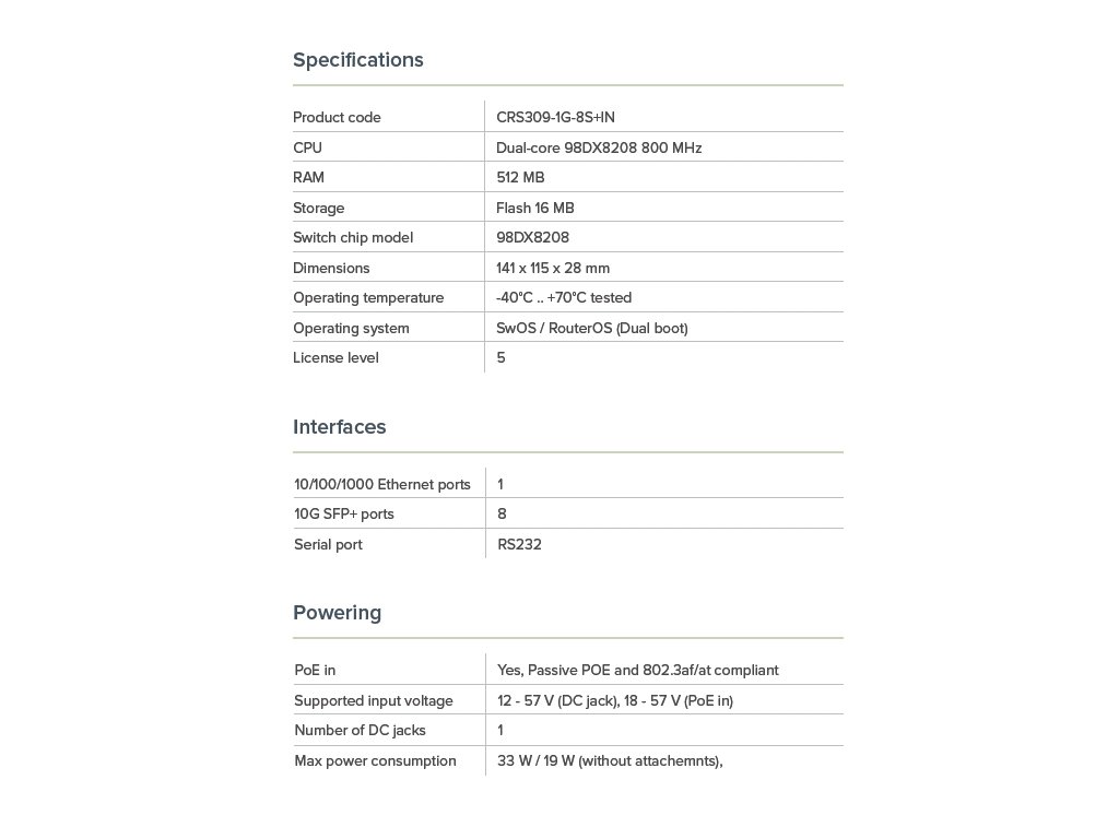 | MPN: | CRS309-1G-8S+IN |