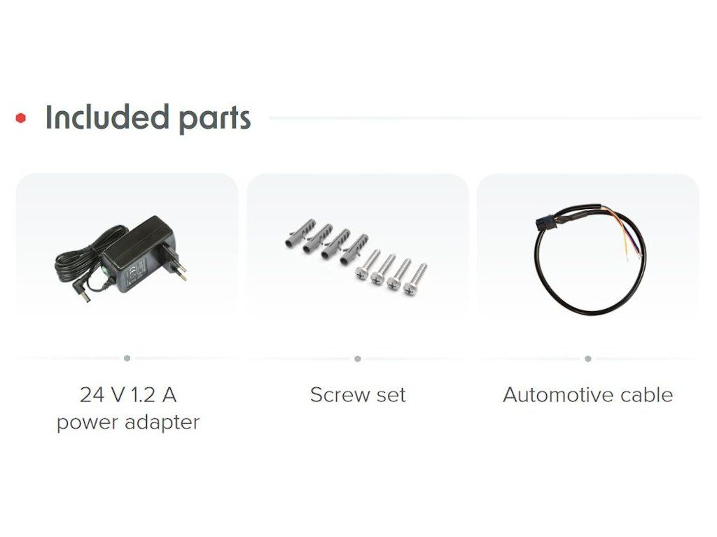 Napájecí adaptér 24 V / 1,2 A, montážní šrouby, napájecí kabel