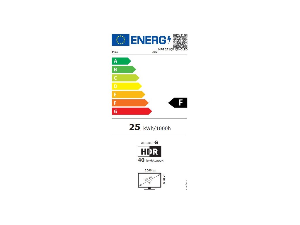 MSI MPG 271QR QD-OLED X50 Typ obrazovky: QD-OLED Úhlopříčka [palce]: 26,5 Rozlišení: 2560 x 1440 (WQHD) Rozteč bodu [mm]: 0,2292 (H) x 0,2292 (V) Obnovovací frekvence [Hz]: 500 Poměr stran: 16:9 Povrch displeje: Antireflexní Jas [nits]: *SDR: 300 nitů *DisplayHDR True Black 500 Kontrast: 1 500 000:1 Odezva [ms]: 0,03 Pozorovací úhly (Horizontál/Vertikál): 178/178 Počet barev: 1,07 miliard Reproduktory: Ne Konektory: *2x HDMI 2.1 (WQHD@500Hz) *1x DisplayPort 2.1a *1x USB Type-C (DP alt.) s 98W PD *1x Headphone out *2x USB 5Gbps Type-A *1x USB 5Gbps Type-B Napájení:Integrované Spotřeba [W]:25 Stand By režim [W]: 0,5 Třída energetické náročnosti: F Montáž na zeď: VESA 100x100 mm Naklápění monitoru: *Naklonění: 5° ~ 20° *Otočení do stran: -30° ~ 30 *Pivot: -90° ~ 90° *Výškově nastavitelné: 0 ~ 110 mm Barva: Černá Rozměry (se stojanem, ŠxVxH mm): 609,3 x 241,9 x 416,1 Rozměry (bez stojanu, ŠxVxH mm): 609,3 x 72,3 x 373,9 Hmotnost [kg]: 8,4/12,9 Obsah balení: 1x HDMI™ kabel(2.1) 1x DisplayPort kabel (2.1a) 1x Napájecí kabel (C13) 1x Quick Guide 1x USB Type-B to A kabel 4x VESA Wall Mount šroub 1x Fiber Cloth, 1x Color Report Záruka: 3 Roky Stránky výrobce: https://www.msi.com/Monitor/MPG-271QR-QD-OLED-X50/OverviewDodatočné parametre