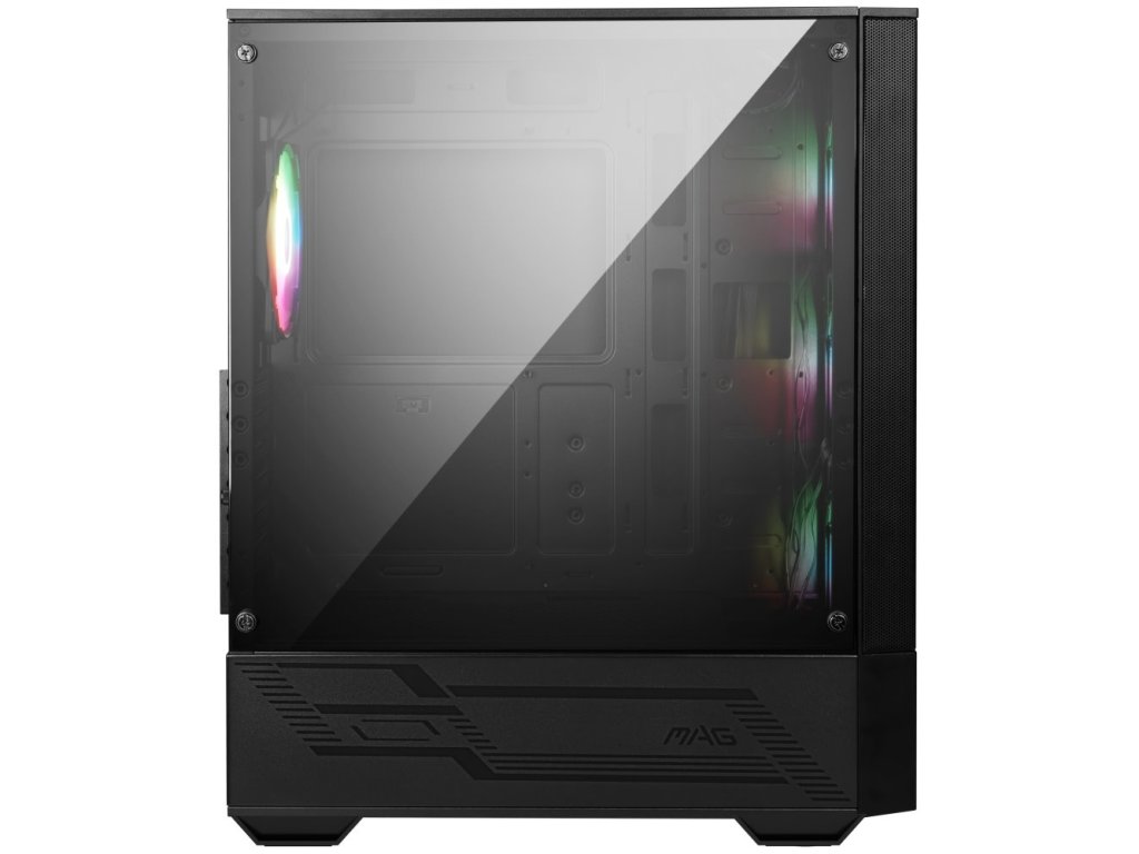 MSI MAG FORGE 112RKvalitní počítačová skříň formátu Middle Tower nabízí tři 2,5" a dvě 3,5" pozice pro SSD a pevné disky. Na horním panelu se nachází dva porty USB 3.0, sluchátkový výstup a audio vstup pro mikrofon. Vybavena je čtyřmi 120 mm ventilátory s ARGB podsvícením, které spolu s perforovaným čelním panelem zajišťují dostatečné proudění vzduchu. Ve skříni je dostatek prostoru pro chladič CPU do výšky až 160 mm a grafickou kartu o délce až 330 mm. Skříň disponuje průhlednou odnímatelnou bočnicí z temperovaného skla a je dodávána bez zdroje. Součástí skříně je také sada prachových filtrů.