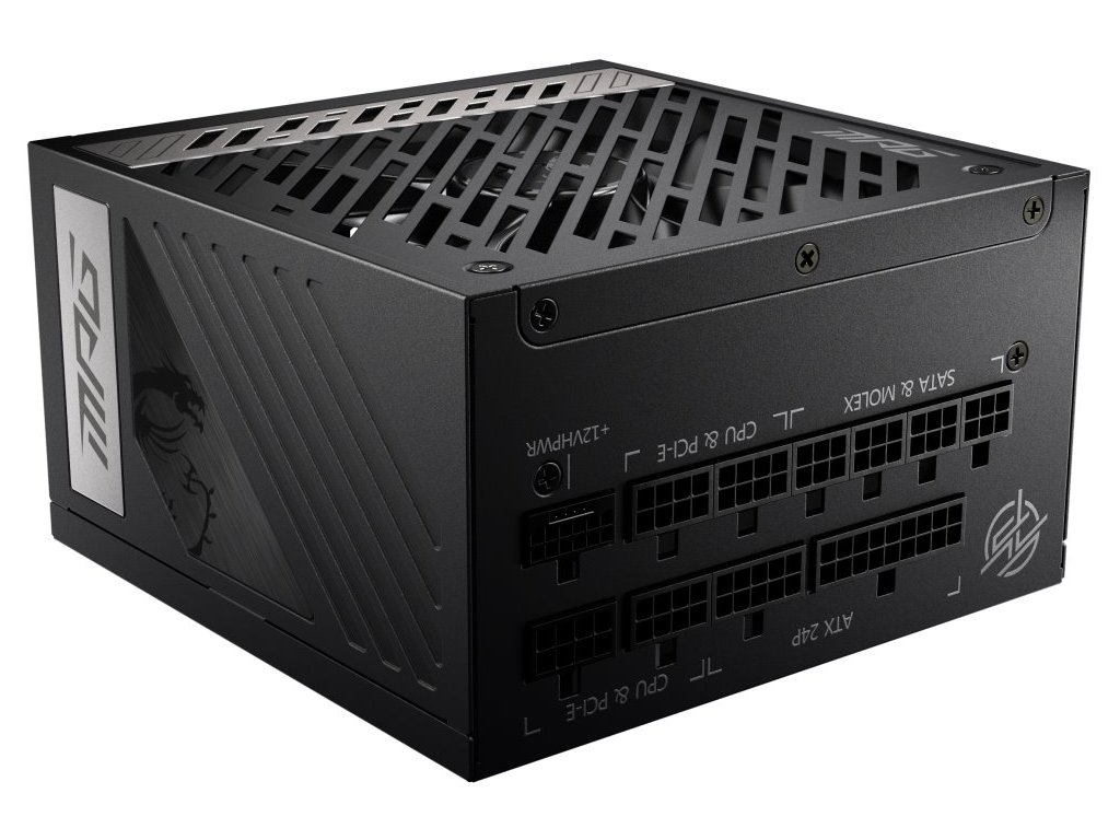 MSI MPG A1000G PCIE5Napájecí zdroj o výkonu 1000 W je osazen tichým a přitom výkonným 135 mm velkým ventilátorem s FDB ložiskem. Zdroj splňuje certifikaci 80PLUS Gold, standard ATX 3.0 a má odpojitelné kabely.