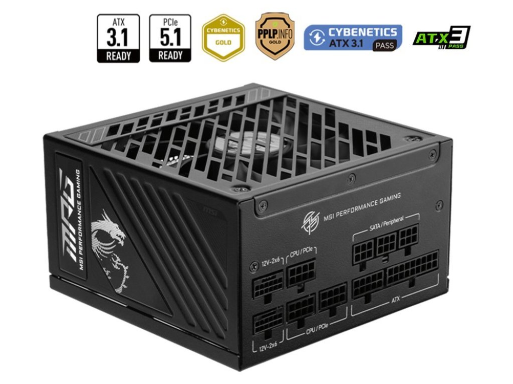 Napájecí zdroj MSI MPG A1250GS PCIE5 je určen pro spolehlivý provoz moderních PC systémů, které jsou postaveny na nejnovějších procesorech a využívají mimořádně výkonné grafické karty NVIDIA série 50. Zdroj tak s přehledem utáhne počítače, které se zaměřují na velmi náročné výpočetní úkony v oblasti grafiky, multimédií nebo třeba umělé inteligence.
