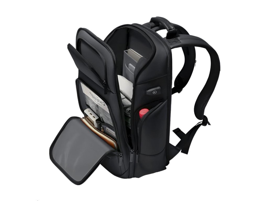 MYBALO ASTON Perfektní volba pro minimalisty s dobrým vkusem 6 ikon: - Nejtenčí batoh - Elegantní - Kapsa na notebook do 15,6" - Kapsa na tablet do 9" - Otevírání o 180 stupňů - USB a USB-C port - Drží tvar - Voděodolný - Skryté kapsy Elegantní a minimalistický Jedná se o velmi elegantní a minimalistický batoh. S tímto parťákem neuděláte chybu při běžném nošení do města, ani na důležité schůzce. Tenký batoh MYBALO Aston je batoh s vůbec nejmenší hloubkou z naší nabídky. Díky tomu působí elegantně a minimalisticky, ale i přesto se do něj vejdou všechny vaše nezbytnosti. Kvalitní voděodolný materiál, dlouhá životnost Kvalitní umělá kůže zajišťuje trvanlivost a odolnost batohu proti vodě a opotřebení. MYBALO Aston tak bude vaším společníkem opravdu dlouho. Drží tvar Batoh si zachovává svůj tvar také v případě, že jej budete mít úplně prázdný. Vestavěný USB a USB-C port Nabíjejte svá elektronická zařízení kdekoli a kdykoli díky vestavěnému USB a USB-C portu. Popruh k uchycení na kufr Cestujte pohodlně. Kdykoli chcete mít volná záda, jednoduše připevněte batoh na rukojeť svého kufru. Pohodlné polstrování Užijte si komfortní nošení díky kvalitnímu a prodyšnému polstrování ramenních popruhů a zádové části. Další praktické kapsy Zorganizujte si pohodlně a snadno své věci díky množství vychytaných kapes. Skryté kapsy V zádové části a na ramenním popruhu najdete skryté kapsy pro bezpečné uložení cenností. Vnitřní kapsy Vnitřní kapsy slouží pro snadnou organizaci všech vašich věcí. Přední kapsa Přední kapsa je určena pro věci, které chcete mít rychle a snadno po ruce. Parametry: - Rozměry: 46 x 30 x 9 cm - Objem: 11 l - Hmotnost: 1,19 kg - Kapsa na notebook: Ano (do vel. 15,6") - Kapsa na tablet: Ano (do vel. 9") - USB port: Ano - Voděodolnost: Ano - Hlavní materiál: Ekokůže + Polyester - Podšívka: Polyester - Barva: ČernáDodatočné parametre