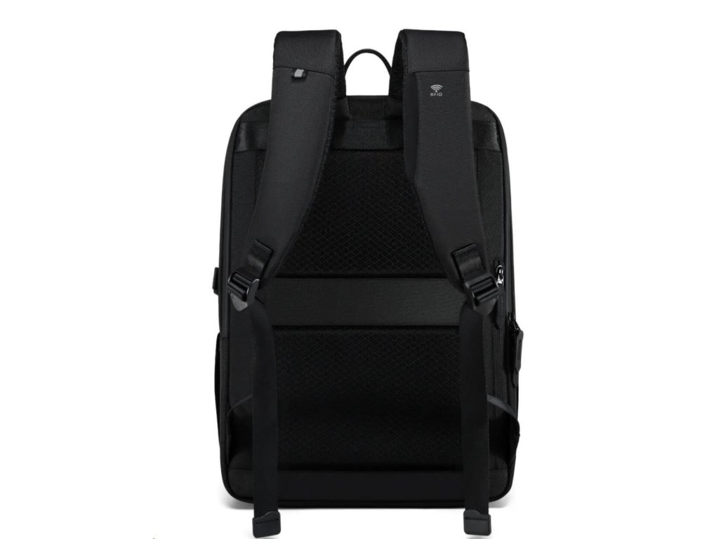 MYBALO ASTON Perfektní volba pro minimalisty s dobrým vkusem 6 ikon: - Nejtenčí batoh - Elegantní - Kapsa na notebook do 15,6" - Kapsa na tablet do 9" - Otevírání o 180 stupňů - USB a USB-C port - Drží tvar - Voděodolný - Skryté kapsy Elegantní a minimalistický Jedná se o velmi elegantní a minimalistický batoh. S tímto parťákem neuděláte chybu při běžném nošení do města, ani na důležité schůzce. Tenký batoh MYBALO Aston je batoh s vůbec nejmenší hloubkou z naší nabídky. Díky tomu působí elegantně a minimalisticky, ale i přesto se do něj vejdou všechny vaše nezbytnosti. Kvalitní voděodolný materiál, dlouhá životnost Kvalitní umělá kůže zajišťuje trvanlivost a odolnost batohu proti vodě a opotřebení. MYBALO Aston tak bude vaším společníkem opravdu dlouho. Drží tvar Batoh si zachovává svůj tvar také v případě, že jej budete mít úplně prázdný. Vestavěný USB a USB-C port Nabíjejte svá elektronická zařízení kdekoli a kdykoli díky vestavěnému USB a USB-C portu. Popruh k uchycení na kufr Cestujte pohodlně. Kdykoli chcete mít volná záda, jednoduše připevněte batoh na rukojeť svého kufru. Pohodlné polstrování Užijte si komfortní nošení díky kvalitnímu a prodyšnému polstrování ramenních popruhů a zádové části. Další praktické kapsy Zorganizujte si pohodlně a snadno své věci díky množství vychytaných kapes. Skryté kapsy V zádové části a na ramenním popruhu najdete skryté kapsy pro bezpečné uložení cenností. Vnitřní kapsy Vnitřní kapsy slouží pro snadnou organizaci všech vašich věcí. Přední kapsa Přední kapsa je určena pro věci, které chcete mít rychle a snadno po ruce. Parametry: - Rozměry: 46 x 30 x 9 cm - Objem: 11 l - Hmotnost: 1,19 kg - Kapsa na notebook: Ano (do vel. 15,6") - Kapsa na tablet: Ano (do vel. 9") - USB port: Ano - Voděodolnost: Ano - Hlavní materiál: Ekokůže + Polyester - Podšívka: Polyester - Barva: ČernáDodatočné parametre