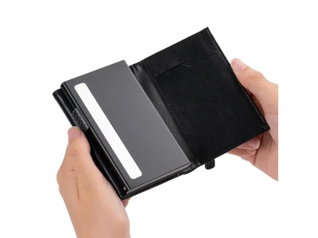 Elegantná peňaženka na karty s rýchlym prístupom a RFID ochranou. Spoľahlivo zabezpečí vaše karty pred poškodením aj rizikom digitálnej krádeže. Pojme 1 až 6 kariet a vďaka hliníkovému držiaku s praktickým tlačidlom je ich vysunutie otázkou sekundy. Skladačka peňaženka Ventra s praktickým magnetickým zapínaním zabezpečuje nielen luxusný vzhľad. Vestavěné magnetické zapínanie spoľahlivo zabezpečí karty aj hotovosť, takže sa nemusíte obávať ich vypadnutia. Vďaka kompaktným rozmerom sa peňaženka pohodlne vojde do každej kapsy.