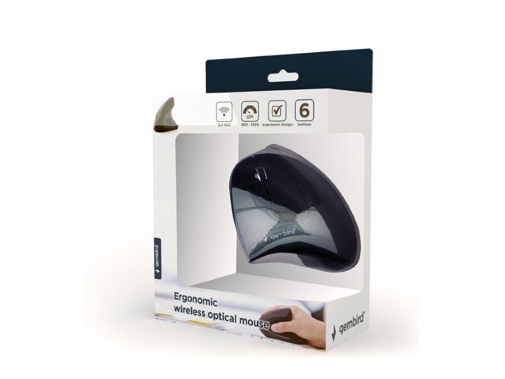 Myš GEMBIRD MUSW-ERGO-01, vertikální, čierna, bezdrôtová, USB receiver MUSW-ERGO-01