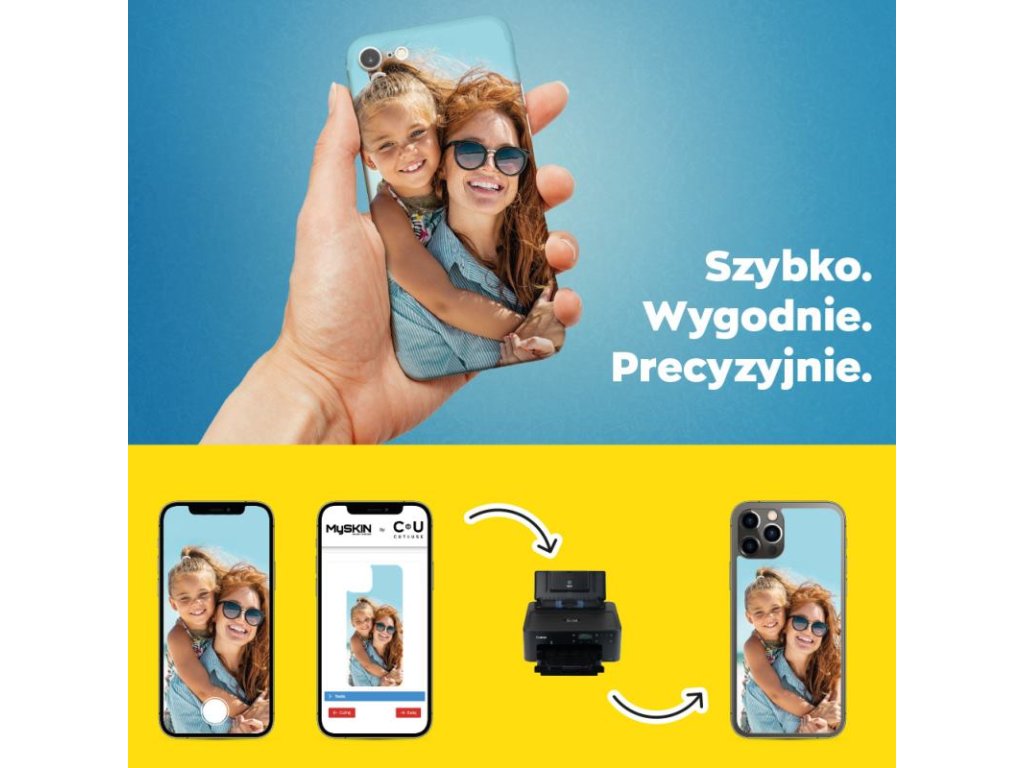 Systém MySKIN umožňuje tlačiť ľubovoľnú grafiku, text alebo fotografie na špeciálnu fotografickú fóliu, dodatočne zabezpečenú ochrannú fóliu, ktorú namontujete na kryty zariadení. Klient si vyberá a upravuje grafiku sám pomocou ľahko použiteľného editora dostupného online na www.MyScreen.studio