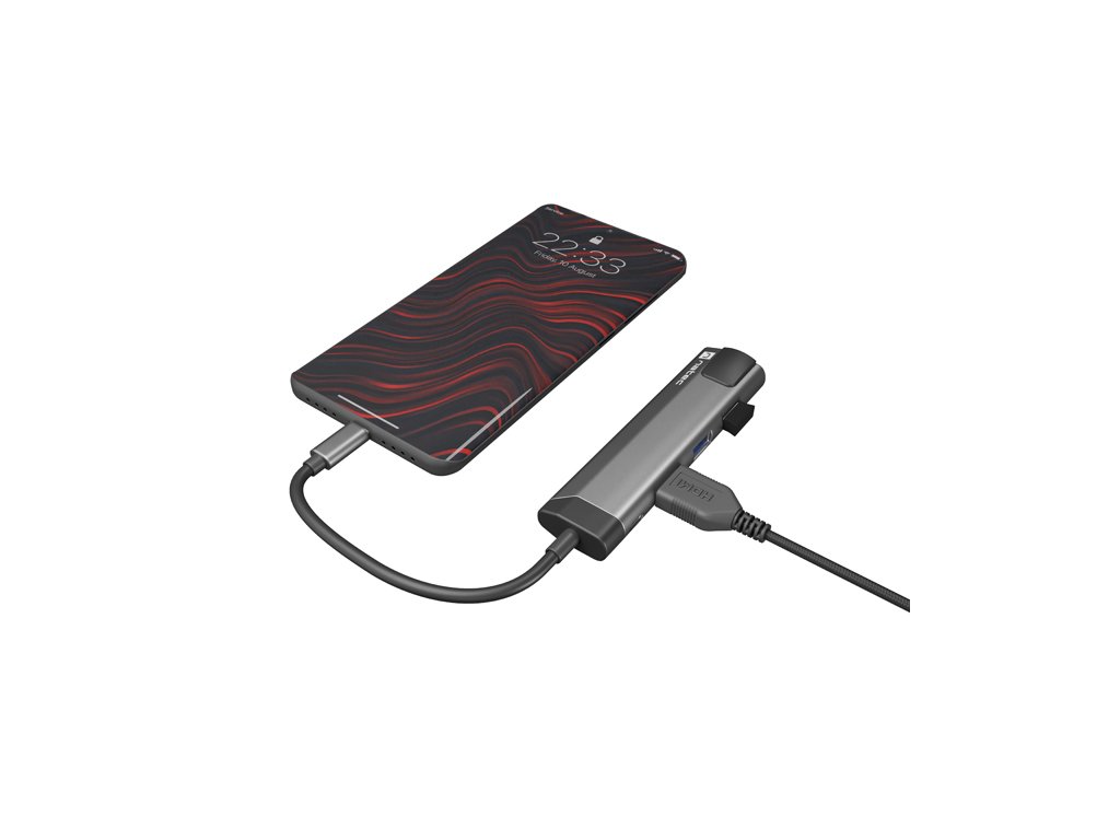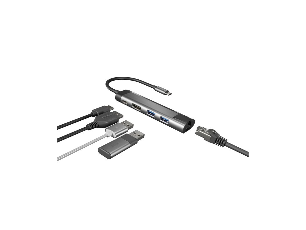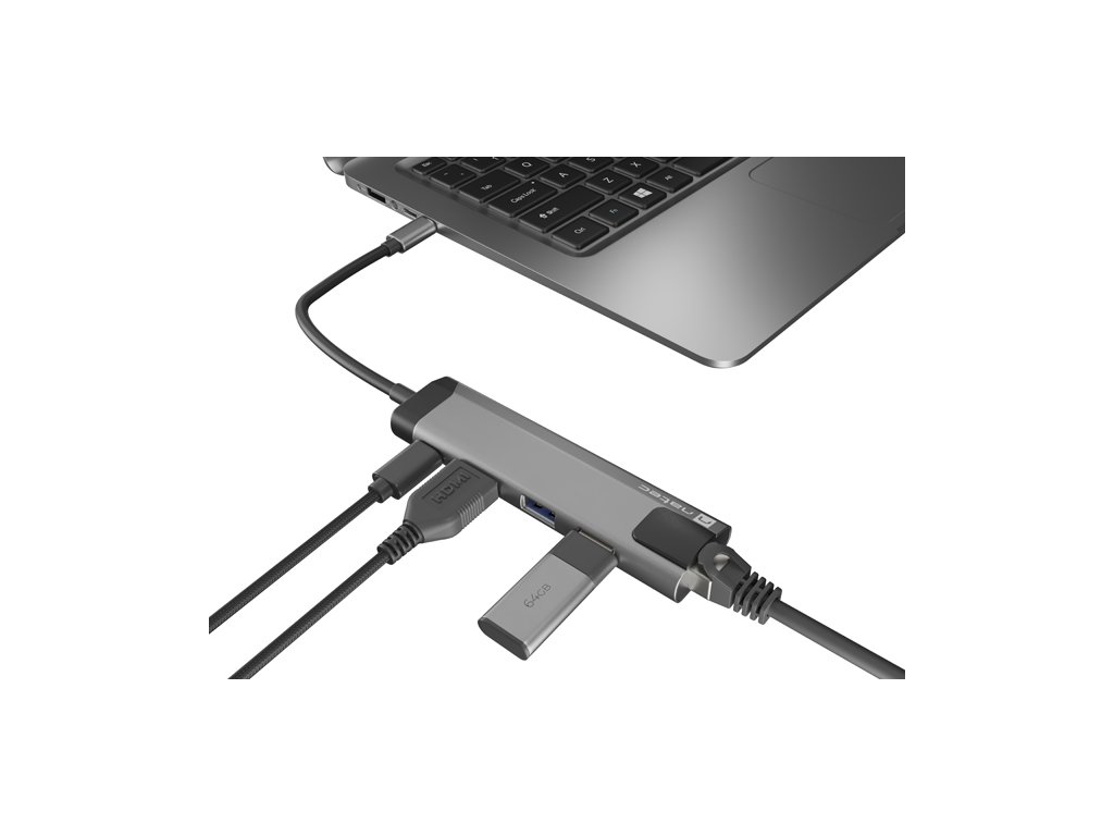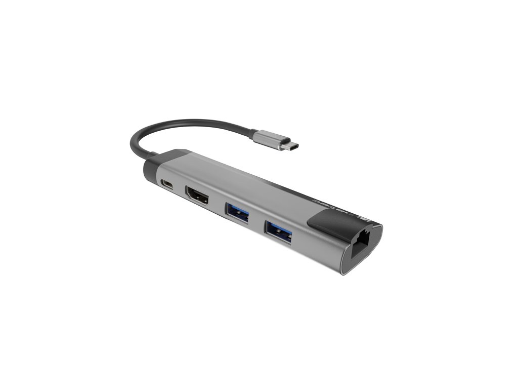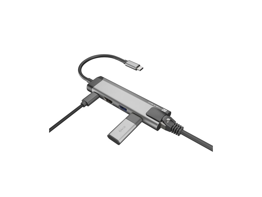 Natec multiport adaptér FOWLER GO HUB 5v1, 2X USB 3.0 HUB, HDMI 4K, USB-C PD, RJ45 NMP-1985