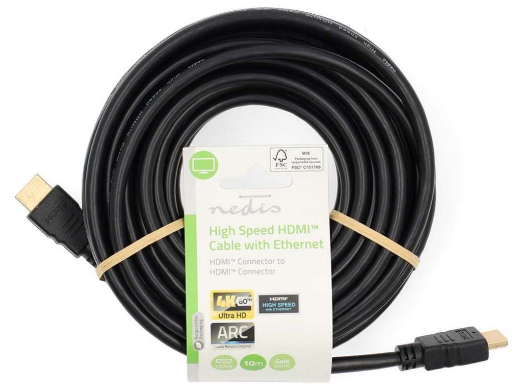 Nedis HDMI 2.0 kabel s Ethernetem 10 mHigh Speed HDMI 2.0 kabel s Ethernetem a zlacenými konektory je vhodný k propojení jednotlivých zařízení. Podporuje přenos videa v rozlišení 4K při 60 Hz a funkce jako je ARC (Audio Return Channel), HDCP nebo 3D obsah ve Full HD.