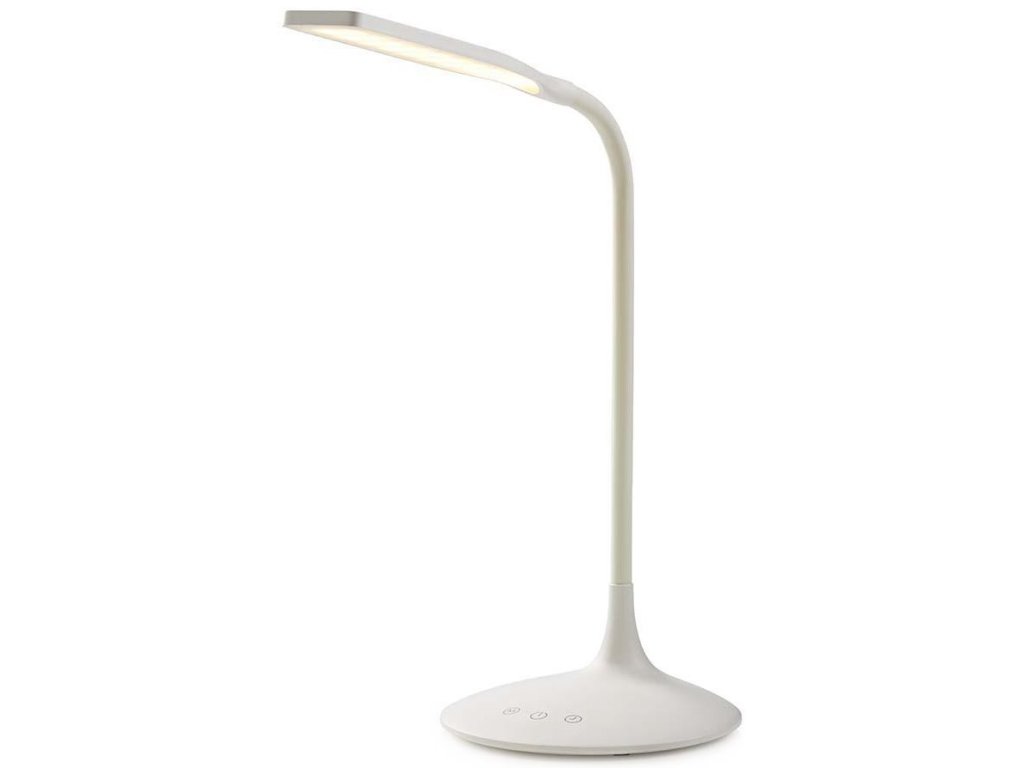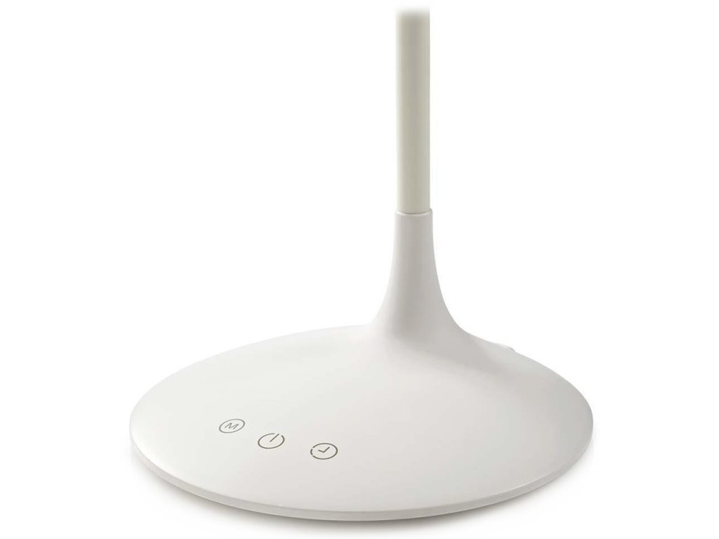 Nedis LTLG3M1WT2Stolní LED lampička v minimalistickém designu disponuje 360° otočnou hlavou a jednoduchým dotykovým ovládáním. Zajisté potěší tři barevné režimy (studená, přirozená a teplá bílá), možnost stmívání a časovač, který umožňuje automaticky vypnout lampičku po 40 minutách. Napájení je řešeno skrze USB port či z vestavěné dobíjecí baterie.