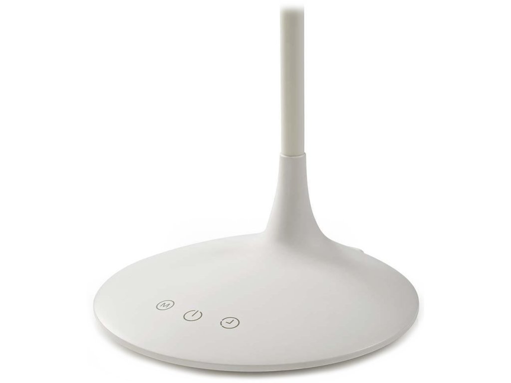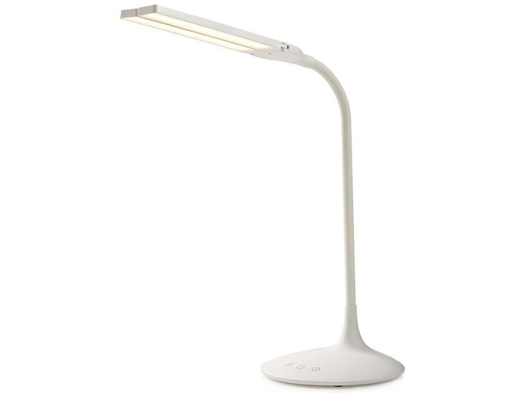 Nedis LTLG3M1WT4Stolní LED lampička v minimalistickém designu disponuje 360° otočnou hlavou, dvěma nastavitelnými rameny a jednoduchým dotykovým ovládáním. Zajisté potěší tři barevné režimy (studená, přirozená a teplá bílá), možnost stmívání a časovač, který umožňuje automaticky vypnout lampičku po 40 minutách. Napájení je řešeno skrze USB port či z vestavěné dobíjecí baterie.