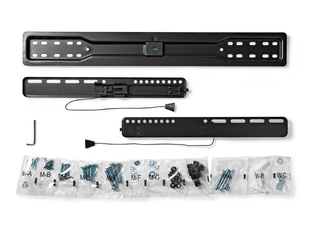 Nedis TVWM5050BKFixní držák na zeď pro montáž televizí s úhlopříčkou 37–70". Maximální zatížení tohoto držáku je 35 kg. S tímto držákem bude TV pouhých 18 mm od stěny, díky čemuž splyne s interiérem jako obraz.