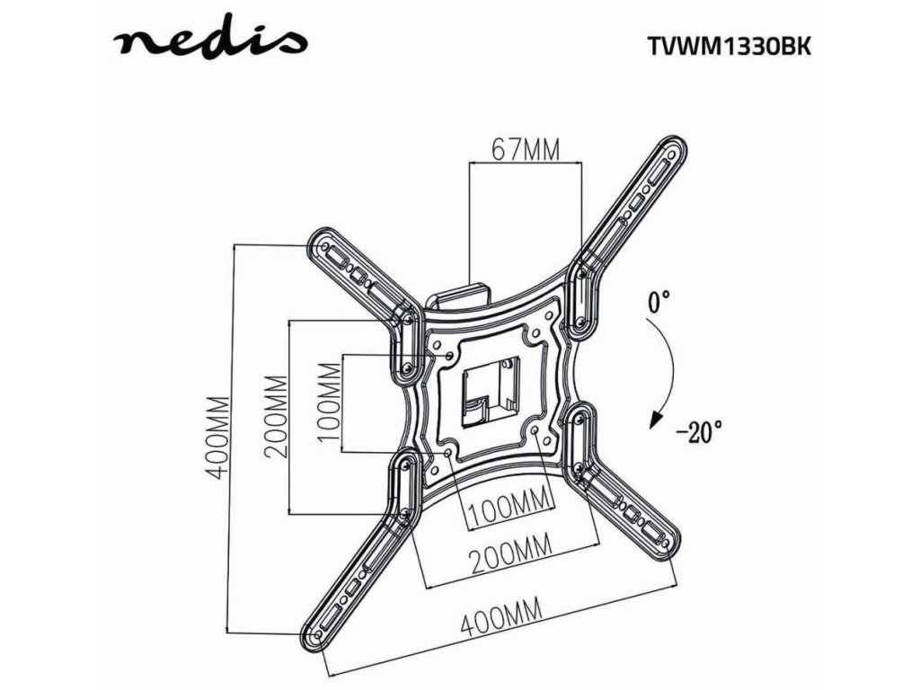 NEDIS nástěnný TV držák/ 23 - 55"/ nosnost 30 kg/ náklon 20°/ otočný 0 - 70°/ Full Motion/ ocel/ černý TVWM1330BK