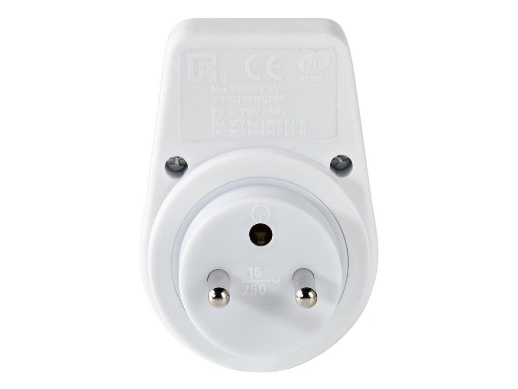 NEDIS přepěťová ochrana/ 230V/ 16A/ dětská pojistka/ 1x FR zásuvka/ bílý EXSO100SPE1WT